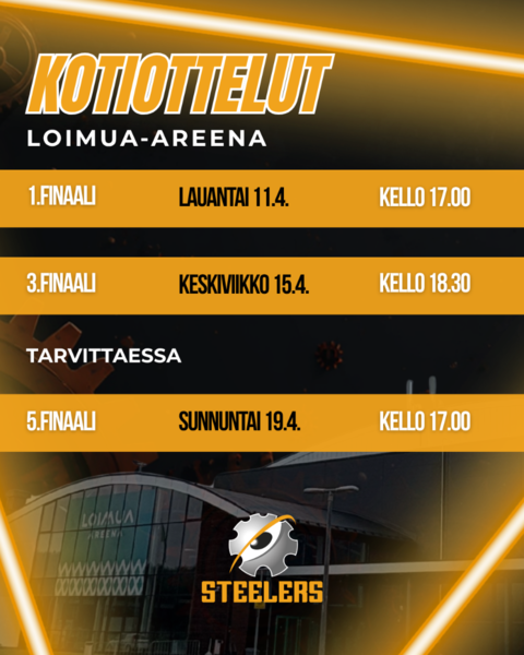 Sisäänpääsy: Otteluihin myydään pääsylippuja viiden ja kolmen euron hintaan. Alle kouluikäiset pääsevät sisään ilmaiseksi. Myös Steelersin ja SC Urbansin junioripelaajat pääsevät ilmaiseksi sisään pukeutumalla omaan pelipaitaansa. Toimihenkilöt sekä valmentajat pääsevät kotiotteluihin ilmaiseksi esittämällä Steelersin digitaalisen jäsenkortin Jopoxista.